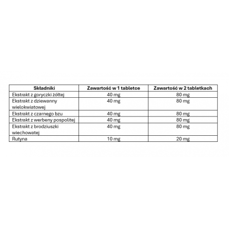 Goryczka + czarny bez + werbena + dziewanna + brodziuszka + rutyna.